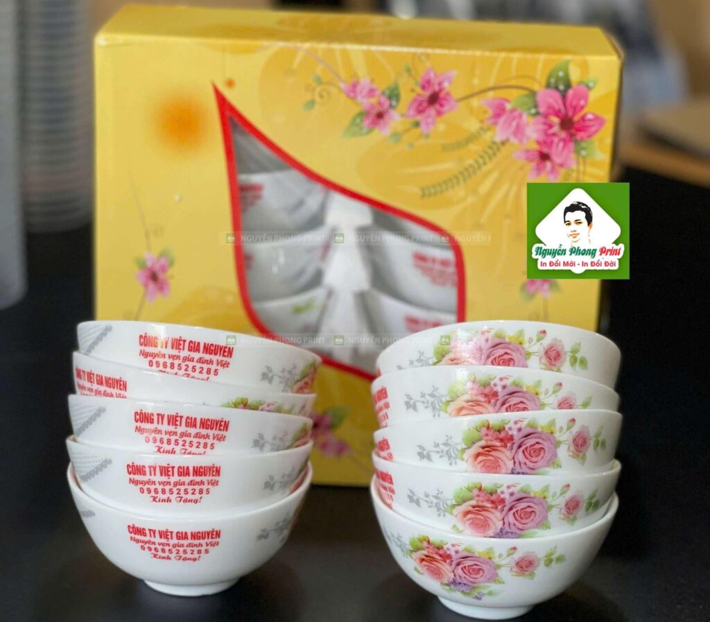 In quà tặng chén sứ